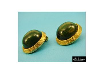 Красивые, благородные винтажные клипсы в классическом дизайне от hattie carnegie. "золотая" оправа и крупные стеклянные вставки, имитирующие жадеит. насыщенный зеленый в золоте смотрится нарядно. размер клипсы - 2,3x2,7 см. состояние отличное. маркированы. None Есть доставка.