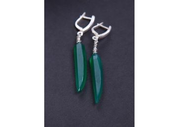 Серьги ручной работы из подвесок хризопраза изумрудного цвета. размер "перьев" на сережки-40х7 мм. застежка на английский замок ,серебро 925. None Есть доставка.