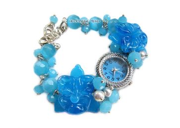 Авторские бусины лэмпворк lampwork), кошачий глаз, цирконы, жемчуг, кварцевые часы, металлофурнитура