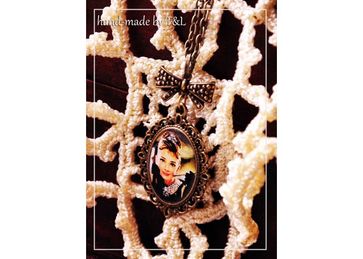 Винтажный кулон с изображением одри хепберн. ручная работа. цепочка может быть любой длины. стандарт - 40-45 см. None Есть доставка.