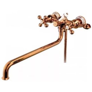 Латунный смеситель Gappo G2265-3 для ванны с переключателем в корпусе с керамическим рисунком красное золото. Оснащён двумя вентилями с керамическими кран-буксами, поворачивающимися на 180 градусов. None Страна производства: Китай