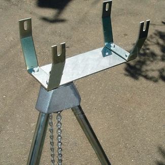 Металлическая тренога для установки громпушек "Zon Mark 4" на любом виде грунта. Приподнимает отпугиватель над землей до 2,3 м. Это позволяет использовать отпугиватель в режиме вращения — при каждом выстреле устройство поворачивается на 40...60 градусов автоматически, и увеличивает площадь защиты до 160 000 кв.м., 0,16 кв.км, 16 Га, 1600 соток, 40 акров, что составляет более 22 футбольных поля (если средняя площадь одного поля 7140 кв.м.). Оснащена цепным поворотным креплением для газового баллона. Тренога значительно увеличивает эффективность гром-пушки Используя громпушку, желательно приподнять её над уровнем земли и поворачивать ствол в разные стороны. Именно для этого предназначена тренога с высотой до 2,3 м, оснащенная поворотным механизмом. Использование треноги при эксплуатации громпушки позволяет существенно увеличить эффективность отпугивания — до 16 гектар, что составляет более 22 футбольных поля (при средней площади одного поля 7140 кв.м.). Преимущества: