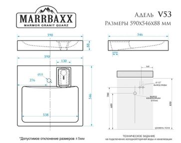 Закажите Раковина Marrbaxx Адель Granit V53D1, кронштейн, сифон у компании Планета сантехники в России на портале Alloy: