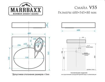 Примечание: Материал-литьевой мрамор;раковина устанавливается на кронштейны над стиральной машиной(не допустимо монтировать на столешницу стиральной машины)
