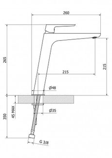 Управление: рычажное Материал: латунь Исполнение: хром Длина излива: см Механизм: керамический картридж Отверстия для монтажа: 1 отверстие Тип подводки: гибкая " Оснащение: без донного клапана, аэратор Рабочий интервал давления в водопроводной сети: 0,5-6,0 Атм Гарантия: 5 лет с даты продажи (за исключением резиновых уплотнителей, шлангов, переключателей)