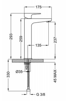 Управление: рычажное Материал: латунь Исполнение: хром Длина излива: 13.5 см Механизм: керамический картридж Отверстия для монтажа: 1 отверстие Тип подводки: гибкая 3/8