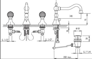 Управление: вентильное Материал: латунь Исполнение: хром, бронза, золото 24 карат Длина излива: 14 см Механизм: керамическая кран-букса Отверстия для монтажа: 3 отверстия Тип подводки: гибкая 1/2" Оснащение: донный клапан, аэратор Дополнительная информация: излив поворотный Рабочий интервал давления в водопроводной сети: 0,5-6,0 Атм Гарантия: 5 лет с даты продажи (за исключением резиновых уплотнителей, шлангов, переключателей)