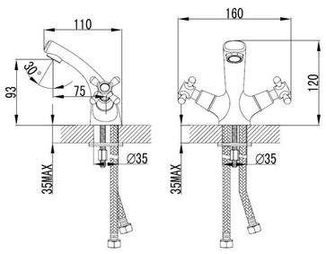 двухрычажный смеситель для раковины (умывальника) корпус из латуни насадка-аэратор горизонтальный монтаж None Страна производства: Россия