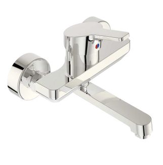 Установка: на стену Литой поворотный излив Расстояние от стены до аэратора: 183 мм Функция CLICK: есть Функция HWTC: есть Аэратор Cascade: есть Керамический картридж 47 мм пр-ва Германии Индикатор холодной/горячей воды: есть Цвет: хром None Страна производства: Болгария