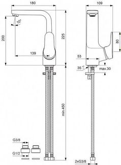 Установка: на раковину Литой излив Высота излива: 200 мм Длина излива: 139 мм Поворот излива: нет Функция CLICK: есть Функция HWTC: есть Аэратор Cascade: есть Подводка: гибкая, 3/8” Переходник на 1/2” в комплекте Система облегченного монтажа Easy-Fix: есть Керамический картридж пр-ва Германии Индикатор холодной/горячей воды: есть Удлиненные шланги 550 мм Донный клапан в комплекте: нет Возможность установки донного клапана: есть Штанга для установки донного клапана: есть Цвет: хром None Страна производства: Болгария