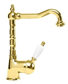 Управление: рычажное Материал: латунь Исполнение: хром, бронза, золото 24 карат Длина излива: 18 см Механизм: керамический картридж Отверстия для монтажа: 1 отверстие Тип подводки: гибкая 1/2" Оснащение: донный клапан, аэратор Дополнительная информация: поворотный излив Рабочий интервал давления в водопроводной сети: 0,5-6,0 Атм Гарантия: 5 лет с даты продажи (за исключением резиновых уплотнителей, шлангов, переключателей)