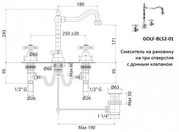 Смеситель на раковину CEZARES GOLF-BLS2 GOLF-BLS2-03 24