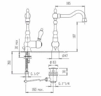 Управление: рычажное Материал: латунь Исполнение: хром, бронза, золото 24 карат Длина излива: 18,5 см Высота излива: 18,7 см Механизм: керамический картридж Отверстия для монтажа: 1 отверстие Тип подводки: гибкая 1/2" Оснащение: донный клапан, аэратор Рабочий интервал давления в водопроводной сети: 0,5-6,0 Атм Гарантия: 5 лет с даты продажи (за исключением резиновых уплотнителей, шлангов, переключателей)