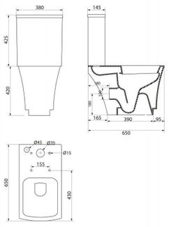Унитаз с бачком и сидением • Габаритные размеры: 380x650x845 • Жесткая крышка-сиденье из дюропласта, быстросъёмная, с механизмом Soft Close • Смыв по всему периметру чаши унитаза • Горизонтальный выпуск P-Trap • Двухрежимная арматура 3/4,5 литра • Гарантия на сантехнический фаянс в отношении дефектов изготовления и материалов (за исключением арматуры бачка, сидений, резиновых изделий) - 25 лет с даты продажи - на арматуру бачка, за исключением резиновых изделий - 3 года с даты продажи - на резинотехнические изделия - 1 год с даты продажи None