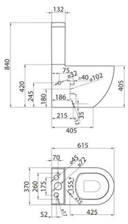 Унитаз с бачком и сидением • Габаритные размеры: 615x370x840 •Жесткая крышка-сиденье из дюропласта, быстросъёмная, ультратонкая SLIM, с механизмом Soft Close • Безободковая конструкция унитаза • Смыв по всему периметру чаши унитаза • Горизонтальный выпуск воды P-Trap • Бесшумное наполнение бачка, нижний подвод воды • Двухрежимная арматура 3/4,5 литров •Гарантия на сантехнический фаянс в отношении дефектов изготовления и материалов (за исключением арматуры бачка, сидений, резиновых изделий) - 25 лет с даты продажи - на арматуру бачка, за исключением резиновых изделий - 3 года с даты продажи - на резинотехнические изделия - 1 год с даты None