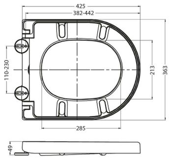 • Габаритные размеры: 525x365x400 • Жесткая крышка-сиденье из дюропласта, быстросъёмная, ультратонкая SLIM, с механизмом Soft Close • Быстросъёмные дюропластовые сидения с механизмами Soft Close • Безободковая конструкция унитаза •Гарантия на сантехнический фаянс в отношении дефектов изготовления и материалов (за исключением арматуры бачка, сидений, резиновых изделий) - 25 лет с даты продажи - на арматуру бачка, за исключением резиновых изделий - 3 года с даты продажи - на резинотехнические изделия - 1 год с даты продажи ОБРАТИТЕ ВНИМАНИЕ: возможна комплектация чаши несколькими видами сидений! None