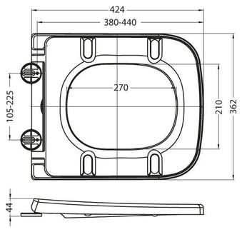 • Габаритные размеры: 355x500x350 • Жесткая крышка-сиденье из дюропласта с механизмом Soft Close • Безободковая конструкция унитаза • Быстросъёмные дюропластовые сидения с механизмами Soft Close Гарантия на сантехнический фаянс в отношении дефектов изготовления и материалов (за исключением арматуры бачка, сидений, резиновых изделий) - 25 лет с даты продажи - на арматуру бачка, за исключением резиновых изделий - 3 года с даты продажи - на резинотехнические изделия - 1 год с даты продажи None