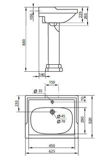 •Габаритные размеры раковины с пьедесталом: 540х640х880 •Отверстие под смеситель: 1 отверстие •Гарантия 25 лет на фаянс None