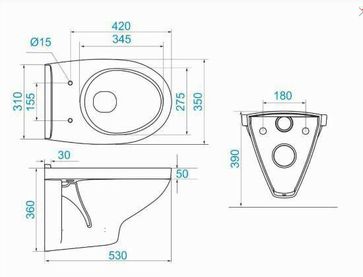 Сиденье: дюропласт Габаритные размеры, мм: 350 x 530 x 360 Унитаз подвесной с сиденьем дюропласт None