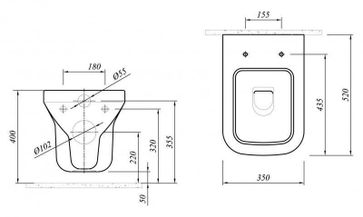 • Габаритные размеры: 520х350х350 • Быстросъёмная крышка-сиденье из дюропласта с механизмом Soft Close • Межосевое расстояние под крепежные шпильки: 18см • Слив по всему периметру чаши унитаза • Гарантия 25 лет на фаянс None