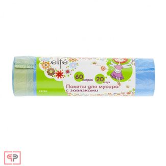 - ELFE Пакеты для мусора с завязками 60 л х 20 шт, синие, Россия Elfe в каталоге Упаковка для медицинских товаров в России;
