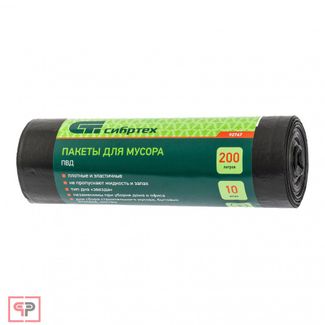 - СИБРТЕХ Пакеты для мусора 200 л x 10 шт, пвд, короткий ролик, тип дна "Звезда",Россия Сибртех по выгодной цене 89 р. руб.;