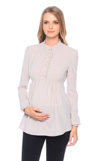 Блузка 40 недель бежевая - с длинным рукавом и воротником стойка. Застегивается на пуговицы, подходит для беременных и кормящих. Минимальная сумма заказа 1500 руб. Возможен самовывоз. Есть доставка.