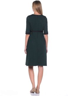 Черно-зеленое в клетку платье торговой марки "40 недель" - модель трапециевидного покроя с контрастным поясом по линии завышенной талии. Изготовлено из мягкой нежной ткани. Минимальная сумма заказа 1500 руб. Возможен самовывоз. Есть доставка.