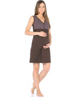 Ночная сорочка 40 недель хлопковая коричневая предназначена для беременных и кормящих женщин. Она выполнена в приятной цветовой гамме с трикотажной окантовкой по вороту и пройме. Наличие кокетки с планкой на кнопках заботятся о комфорте во время грудного кормления, а небольшие складки от нее обеспечивают пространство для животика в период беременности. Минимальная сумма заказа 1500 руб. Возможен самовывоз. Есть доставка.