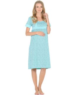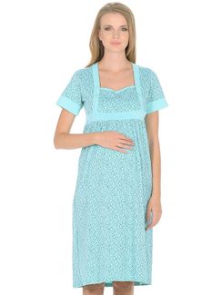 Ночная сорочка 40 недель с короткими рукавами бирюзовая - удобная и красивая модель со свободным силуэтом от кокетки, которая пошита из хлопкового трикотажа. Вырез горловины имеет форму каре. Наличие двух коротких планок с пуговицами, расположенными на кокетке, обеспечивает комфортное кормление грудью. Минимальная сумма заказа 1500 руб. Возможен самовывоз. Есть доставка.