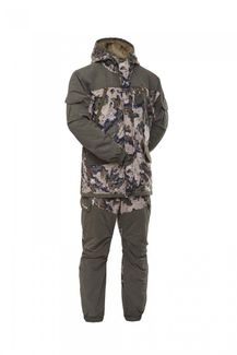 Ткань верха: Алова (100% ПЭ, показатели мембраны 10000/10000, плотность 185 г/кв.м)Ткань отделки: Финляндия (77% нейлон, 23 % ПЭ)Подклад куртки: Алова без пленки (100% ПЭ, плотность 130 г/кв.м)Подклад брюк: таффета (100% ПЭ)Утеплитель: ТермотексКостюм «Горка Осень» (ТМ PRIDE) - разработан в компании Novatex на основе легендарного костюма «Горка», используемого в спецподразделениях, а также огромным числом любителей всевозможного экстрима. Костюм «Горка Осень» состоит из куртки и брюк на подтяжках. Отличается специальным анатомическим кроем, характерным для данной линии одежды. Он не стесняет движений, дает свободу перемещения в условиях пересеченной местности. Верхний слой изготовлен из современной мембранной ткани Алова, обладающей отличными ветро- и влагозащитными свойствами. Плечи и зона сидения дополнительно усилены бесшумной мембранной тканью Финляндия. Подклад куртки выполнен из мягкой гипоаллергенной ткани Алова (без мембранной пленки), в рукавах подклад выполнен скользящей стороной Аловы вверх, что обеспечивает комфортное одевание и в то же время тепло в зоне рук. Подклад брюк полностью из скользящего подклада таффета. Все застежки молнии дополнены фирменными пуллерами, что позволяет с комфортом пользоваться ими не снимая перчаток. Костюм утеплен современным утеплителем Термотекс. Температура комфорта 0 градусов, температура экстрим - минус 15 градусов.Удлиненная куртка застегивается на молнию с двумя бегунками и двойную ветрозащитную планку на металлических кнопках. Карманы куртки дополнены флисовым подкладом. Нарукавные карманы застегиваются на клапаны с металлическими кнопками. Большие нагрудные карманы предназначены для согрева рук, а два бегунка на молнии позволяют раскрывать карман как сверху вниз, так и снизу вверх. Нижние карманы куртки на клапанах с магнитной застежкой, что позволяет пользоваться ими во время охоты без риска спугнуть добычу. Внутренний карман куртки на молнии сохранит в цел