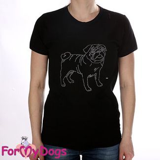 Приталенная женская футболка с изображением собаки породы Мопс. Трикотаж высокого качества от ForMyDogs. Рисунок выполнен из страз. Футболка отлично сочетается с велюровым костюмом для мопсов (смотрите внизу страницы). None Есть доставка. Доставка: 100.0RUR