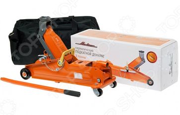 Домкрат подкатной Airline AJ-3F-390P в сумке инструмент, используемый для поднятия различных грузов. Прост и удобен в эксплуатации, обеспечивает плавный подъем грузов. Наиболее широко применяется в автомастерских, гаражах и на станциях шиномонтажа для подъема автомобилей с целью замены колеса или проведения профилактических и ремонтных работ. Особенности и преимущества Грузоподъемность 3 тонны. Гидравлический домкрат оснащен длинной ручкой, которая позволяет использовать изделие с большим комфортом. Модель домкрата позволяет поднимать и фиксировать предметы на высоте 39 см. В изделии предусмотрено морозостойкое масло, что позволит использовать подъемник даже в суровых морозных условиях. Имеется фиксирующий шток. Домкрат отличается компактностью конструкции и надежностью в эксплуатации. Для удобства транспортировки в комплекте предусмотрена сумка. Рекомендации Перед использованием домкрата важно убедиться, что поверхность, на которой он установлен, ровная, твердая и без наклона. Не используйте домкрат для поднятия грузов, если их масса превышает допустимую. Перед поднятием груза нужно убедиться, что груз распределен равномерно по центру опорной поверхности домкрата. None Возможен самовывоз. Есть доставка.