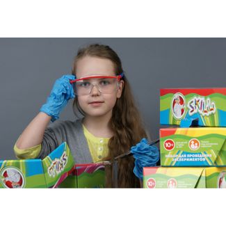 "Волшебный светофор" — целая домашняя химическая мини-лаборатория! Хотите вспомнить опыты со школьных уроков химии? Или наверстать то, до чего так и не дошло дело в школе? Или заинтересовать своих детей этой увлекательной наукой? А может просто провести время увлекательно и познавательно? Тогда этот набор для Вас, ведь он включает в себя целых 6 классических опытов!Линия SKILL предлагает Вам почувствовать себя настоящим химиком! Теперь у Вас есть все, чтобы совершить не один, а целых шесть увлекательных экспериментов. Прекрасный подарок как для родных и друзей, так и для себя!Первый опыт: Окисление глюкозы. Маятниковый переход цвета в этом опыте можно наблюдать продолжительный промежуток времени. Переход цвета происходит из-за окислительно-восстановительной реакции, в результате которой индикатор восстанавливается, становясь бесцветным. Простого взбалтывания колбы хватает, чтобы произошло окисление индикатора кислородом, из-за чего он опять станет синим! Второй опыт: Волшебный светофор. Переход цветов в этом опыте можно наблюдать в течении некоторого промежутка времени. Это происходит потому, что с течением времени значение ph раствора меняется, а индикатор помогает наглядно увидеть это изменение. Цвет раствора будет меняться самостоятельно, а также при взбалтывании колбы! Третий опыт: Искусственная кровь. Этот опыт не для слабонервных! С помощью хлорида железа и роданида калия можно имитировать глубокий кровоточащий порез, а раствором фторида аммония — мгновенно исцелить его. Четвертый опыт: Реакции нейтрализации. Когда кислота вступает в реакцию с основанием, происходит реакция нейтрализации, в результате которой образуется соль и вода. Для того, чтобы внимательно проследить этот переход, следуйте инструкции. Часто эти реакции сопровождаются выделением тепла.Пятый опыт: Универсальный лакмусовый индикатор. Случалось видеть, как лаборанты развлекаются с меняющими цвет бумажками? Теперь Вы и сами сможете почувствовать себя настоящим химиком! С помощью лакму