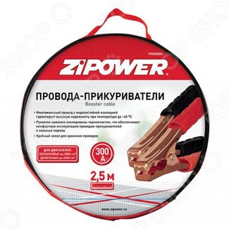 Провода пусковые Zipower PM 0505 N многожильные медные провода с двойной морозостойкой обмоткой для запуска легковых автомобилей с разряженной аккумуляторной батареей. Используются в экстренных ситуациях, когда аккумулятор транспортного средства находится в разряженном состоянии или с загустевшим от мороза маслом. Провода позволяют запустить двигатель от аккумулятора другого автомобиля. Провод и зажимы изолированы, что исключает риск случайного замыкания контактов. Зажимы с широким углом для удобного хвата позволяют с легкостью крепить провода на любой тип клемм аккумулятора. Изделия не допускают потери напряжения при высоких токах и обеспечивают хороший контакт. Особенности и преимущества Высококачественная обжимка проводов обеспечивает высокую устойчивость к механическим повреждениям. Благодаря морозостойкой изоляции до 40 С провода прикуривания можно использовать при любых погодных условиях. Специальная окраска проводов обеспечивает однозначное подключение к аккумуляторам и защищает от переполюсовки. Провода рассчитаны на силу тока до 300 Ампер. Длина 2,5 метра. None Возможен самовывоз. Есть доставка.