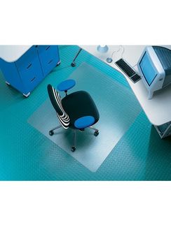 для ковровых покрытий существует особая категория изделий, которые благодаря специальным шипам, надёжно фиксируются на поверхности; ассортимент продукции представлен коврами различных форм и размеров; благодаря свойствам материала коврики обладают также шумопоглощающими свойствами; верхний слой имеет рельефную, износостойкую поверхность, которая препятствует проскальзыванию колёс стульев; на нижнюю, гладкую поверхность ковра, термически нанесён специальный слой, улучшающий сцепление с паркетом и создающий «эффект прилипания»; коврики RS OFFICE не выделяют ядовитых летучих соединений и запахов; не вызывают аллергических реакций; подходят для полов с подогревом; квадратной формы. None