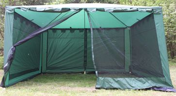 ПОДАРОК - КОМПЛЕКТ ЗАПАСНЫХ СОЕДИНИТЕЛЬНЫХ КРЕПЛЕНИЙ НА СЛУЧАЙ УТЕРИ !!!В этом шатре площадью 12 кв. м. комфортно разместится 13 человек.Выезжая на природу, не забудьте взять с собой шатер Campack Tent G-3401W.Модификация с индексом W снабжена дополнительными внешними ветро-влагозащитными полотнами на застежке молния и имеет проклеенные швы для защиты от неблагоприятных погодных условий.Этот вместительный тент поможет организовать удобное пространство, защищённое от всех капризов погоды, где бы Вы ни находились.Тент имеет форму прямоугольника, а общая внутренняя площадь в 12 кв.м позволит свободно разместить кемпинговую мебель и проводить завтраки и обеды на свежем воздухе всей семьей. С шатром Campack Tent G-3401W у Вас больше не возникнет вопросов, где посидеть вечером с друзьями и поесть шашлыки.Благодаря своим характеристикам тент будет невероятно полезен при всевозможных выездах в походы, кемпинг, на рыбалку или охоту.Крепкий стальной каркас не даст сильному ветру повлиять на Ваш отдых, а для дополнительной фиксации шатра рекомендуется воспользоваться колышками и оттяжками, которые идут в комплекте.Все 4 стороны оборудованы москитной сеткой для защиты от насекомых. Москитки продублированы сверху ветро-влаго-защитными полотнами. Они сворачиваются и закрепляются наверху с помощью петелек. Поднимите все полотна, оставив только москитную сетку, и наслаждайтесь видами природы.У Campack Tent G-3401W есть 2 входа, расположенных напротив друг друга по длинным сторонам тента. Каждый вход имеет молнию по середине стенки, что позволяет, как полностью открыть обе половины, так и оставить одну половину входа закрытой.Вы можете не боятся, что внезапно начавшийся дождь испортит Вам отдых – у шатра все швы проклеены. А материал тента имеет водонепроницаемую пропитку в 3000 мм водяного столба.Campack Tent G-3401W обязательно пригодится:• На кемпинге, туристическом слете как центральное место сборов.• В качестве кемпинговой кухни или столовой;• На даче вместо стационарной бесед