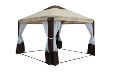 В этом шатре площадью 9 кв. м. комфортно разместится 10 человек.Шатер Митек Пикник-Элит может использоваться как для коллективного отдыха на природе, так и на приусадебном участке. Отлично подойдёт в качестве беседки, шатра для барбекю или летней кухни. Это далеко не все варианты использования шатра. Например, Вы можете использовать его для торжественных мероприятий (свадеб, дней рождения, семейных праздников, банкетов, фуршетов, и других мероприятий). Шатер Митек Пикник-Элит будет роскошным украшением вашего приусадебного участка, а если вы решите разместить его на каком-либо мероприятии - подчеркнёт индивидуальность вашего торжества!Тент шатра выполнен из полиэфирной ткани oxford 240D PU 2000 с водоотталкивающей пропиткой (водостойкостью 2000 мм водяного столба), устойчивой к воздействию солнечных лучейШвы крыши тента проклеены.В верхней части крыши имеется вентиляционный клапан-вытяжка, снабженный антимоскитной сеткой от насекомых и защитным козырьком. Благодаря этому внутри шатра всегда будет свежий воздух, но не будет проблем с насекомыми и осадками!Тент крепится к каркасу при помощи стропы с пряжкой и липучек. Это позволяет осуществить хорошую натяжку тента, что очень важно при ветре и дожде. Глухие стенки сверху пришиты к тенту и крепятся к ножкам при помощи застежек-молний (при необходимости Вы можете их поднять)Стенки с антимоскитной сеткой пришиты к стойкам и соединены между собой разъемной молнией. Сверху стенки с сеткой крепятся к поперечным трубкам при помощи петель, что позволяет расстегивать и раздвигать стенки в стороны. Отличительной особенностью шатра является наличие раздвижных москитных стенок.Тент имеет восемь прочных петель-оттяжек, для дополнительной жесткой фиксации на местности.Защитная замкнутая юбка с низу тента исключает поддув холодного воздуха снаружи и затекания воды.Каркас нового шатра выполнен из стальной трубы диаметром 25 мм с усиленными вертикальными стойками и узлами из трубы диаметром 28 мм, как и в предыдущей модели (пикник-люк