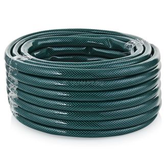 Не прозрачный шланг ПВХ для полива сада, огорода, газона, теплиц и орошения дорожек. Так же шланг применяется в строительстве. Такая популярность достигается за счет конструктивной надежности шланга из ПВХ, шланг изготовлен из трех слоев и усилен кордовой нитью, что придает надежность и защищает от переломов и в то же время делает его эластичным.