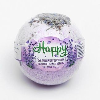 - Бурлящий шар для ванн двухцветный с цветками лаванды Happy по выгодной цене 140 р. руб.;
