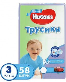 Трусики-подгузники 7-11 кг 58 шт. Хаггис Huggies специально разработаны для мальчиков с учетом анатомических и физиологических особенностей. Специальный слой DryTouch позволит впитывать жидкость за считанные секунды. Минимальная сумма заказа 1500 руб. Возможен самовывоз. Есть доставка.