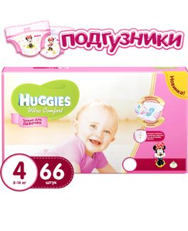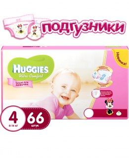 - Huggies для девочки Ultra Comfort 4 (8-14 кг) 66 шт по выгодной цене 1 339 р. руб.;