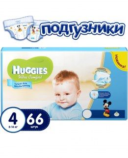 - Huggies Ultra Comfort 4 (8-14 кг) для мальчика 66 шт по выгодной цене 1 339 р. руб.;