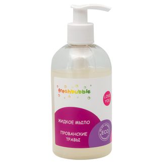 Натуральное жидкое мыло с ароматом прованских трав. В основе нашего мыла растительный ПАВ из кокоса и глюкозы, он очень мягкий и безопасный. Создатели марки сами родители и знают, что здоровье наших детей - это самое важное. Жидкое мыло полностью смывается с рук, попадая в воду не загрязняет её. Жидкое мыло Freshbubble: - без SLS/SLES, PEG;- без содержания хлора и фосфатов;- без синтетических ароматизаторов;- без содержания нефтепродуктов;- без красителей. Хранить при температуре от +5° до +25°С. Срок годности: 2 года. Объем: 300 мл. Из-за натурального состава, возможно легкое изменение консистенции или цвета продукта, что никак не влияет на потребительские свойства. При производстве мы используем энергосберегающие технологии без нагрева. Состав: Aqua (Вода), Sodium Coco-Sulfate (ПАВ на основе кокосового масла), Hydrogenated starch hydrolysate (Растительный сорбитол), Coco-glucoside (Мягкий ПАВ из кокосового масла), Xanthan Gum (Ксантановая камедь), Citric acid (Лимонная кислота), Lavandula Hybrida Oil (Эфирное масло лавандина), Sodium Benzoate (Бензоат натрия), Potassium sorbate (Сорбат калия), Rosmarinus officinalis Leaf Oil (Эфирное масло розмарина).Внимание! Фактический цвет изделия может незначительно отличаться от цвета на фотографии в связи с особенностями цветопередачи различных цифровых устройств. None