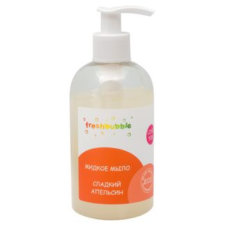 Натуральное жидкое мыло с ароматом сладкого апельсина.В основе нашего мыла растительный ПАВ из кокоса и глюкозы, он очень мягкий и безопасный.Создатели марки сами родители и знают, что здоровье наших детей - это самое важное. Жидкое мыло полностью смывается с рук, попадая в воду не загрязняет её.Жидкое мыло Freshbubble:- без SLS/SLES, PEG; - без содержания хлора и фосфатов;- без синтетических ароматизаторов;- без содержания нефтепродуктов - без красителей.Хранить при температуре от +5° до +25°С.Срок годности: 2 года.Объем: 300 мл.Из-за натурального состава, возможно легкое изменение консистенции или цвета продукта, что никак не влияет на потребительские свойства.При производстве мы используем энергосберегающие технологии без нагрева.Состав: Aqua (Вода), Sodium Coco-Sulfate (ПАВ на основе кокосового масла), Hydrogenated starch hydrolysate (Растительный сорбитол), Coco-glucoside (Мягкий ПАВ из кокосового масла), Xanthan Gum (Ксантановая камедь), Citrus Sinensis oil (Эфирное масло апельсина), Citric acid (Лимонная кислота), Sodium Benzoate (Бензоат натрия), Potassium sorbate (Сорбат калия), Hippophae Rhamnoides Fruit Extract (Экстракт облепихи).Внимание! Фактический цвет изделия может незначительно отличаться от цвета на фотографии в связи с особенностями цветопередачи различных цифровых устройств. None