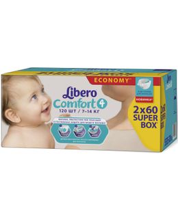 - Libero Comfort Size 4 (7-14 кг) 120 шт по выгодной цене 1 982 р. руб.;