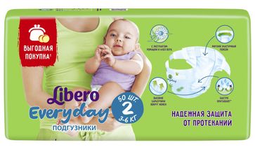 - Libero Everyday Size 2 (3-6 кг) 50 шт по выгодной цене 552 р. руб.;