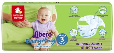 - Libero Everyday Size 3 (4-9 кг) 46 шт по выгодной цене 552 р. руб.;