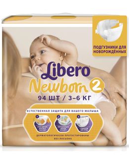 - Libero Newborn Size 2 (3-6 кг) 94 шт по выгодной цене 1 262 р. руб.;