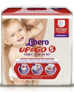 - Libero Up&Go Size 5 (10-14 кг) 16 шт по выгодной цене 403 р. руб.;